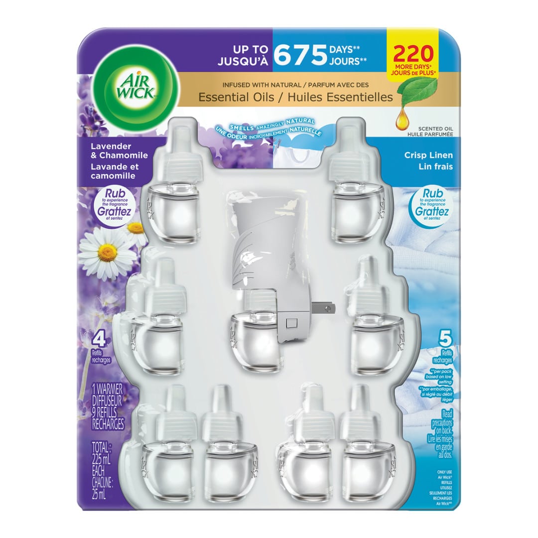 Air Wick Scented Oil Plug-in Lavender & Chamomile and Crisp Linen 1 Warmer And 9 Refills