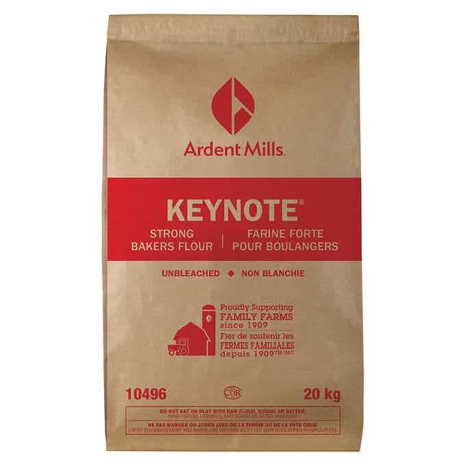 Ardent Mills Keynote is a strong bakers flour made of hard wheat unbleached. It comes in a 20 kg package.