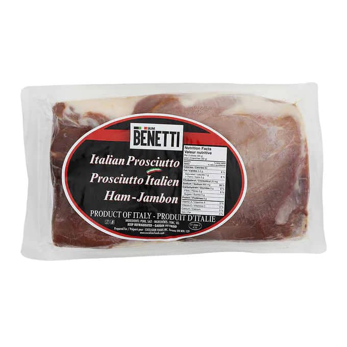 Experience the flavorful taste of Italy with Benetti Italian Prosciutto. This deli ready cured ham has been slowly-cured for 9 months to give it a unique, savory flavor. Coming from Italy, it is a product of the highest quality, ensuring satisfaction with every bite. Boasting an average weight of 4.5 kg, Benetti Italian Prosciutto is sure to make any meal complete. Keep refrigerated for optimal freshness.