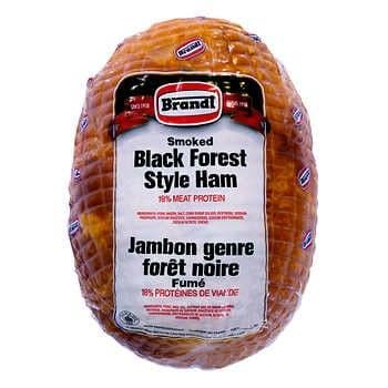 Enjoy the delicious flavor of Brandt Whole Black Forest Ham! This naturally hardwood smoked pork ham is unsliced and perfect for use in a variety of dishes. Each ham is individually wrapped and cured to perfection. Gluten-free, soy-free and lactose-free, this ham is packed with 18% meat protein and low in fat, making it a great choice for your next meal. Keep refrigerated for freshness and enjoy an average weight of 3.5 kg.