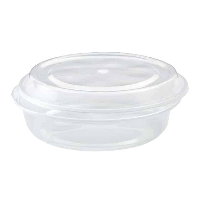 The Café Express 22-oz Round Containers with Lids provide a convenient way to package and store meals for take out or delivery. Made from polypropylene, they are clear, allowing your customers to easily see the contents. With a capacity of 650 mL (22 oz), each set includes 50 containers and 50 lids. The model number is EGF650RC. Enjoy the ease and convenience of Café Express takeout containers.