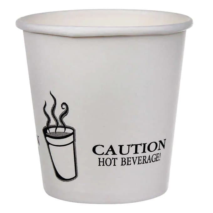 Café Express 4-oz Single Wall White Hot Cups are perfect for serving hot and cold beverages. These 118 mL (4 oz) cups are white, poly-lined and come in packs of 100 for a total of 500 cups. Model number: BPPS405.