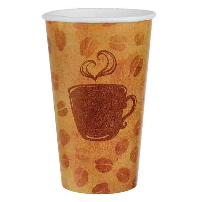 Take your coffee game to the next level with Café Express Single Wall 16-oz Hot Cups! These poly-lined cups feature a stylish printed design and are perfect for serving hot beverages. With 5 packs of 100 cups each, you'll have 500 cups in total for all your coffee needs! The compatible lid for these cups is Café Express 90 mm Dome Sip Lids, sold separately at Costco with item 1092149. Keep your coffee warm and your hands cool with Café Express Single Wall 16-oz Hot Cups!