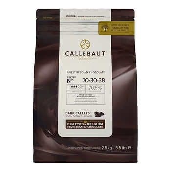 Callebaut Dark Belgian Chocolate Callets are a high quality dark chocolate with a 70.5% minimum cocoa solids content and a 39% total fat. With an extra bitter flavour and roasted notes, these callets come in a resealable bag of 2.5 kg and are perfect for baking projects.