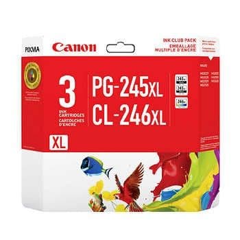 This Canon PG-245XL Black and CL-246XL Colour Ink Cartridge is an ideal choice for your Canon inkjet printer. The pack of 3 (2 black, 1 colour) cartridges provide up to 300 pages based on a 5% coverage each. It is compatible with Canon Inkjet: MG2420 PIXMA, MG2520 PIXMA, MG2525, MG3020, MG3029, TS3120 PIXMA.