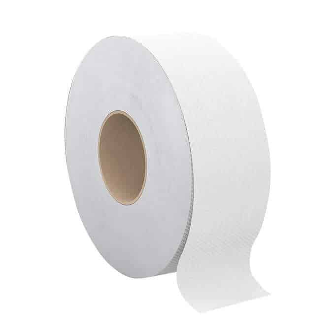 Cascades Pro Select Jumbo Bathroom Tissue is made from 100% recycled fiber and contains 1,000 feet of tissue. It is biodegradable and safe for plumbing and septic systems. This pack contains 12 rolls.