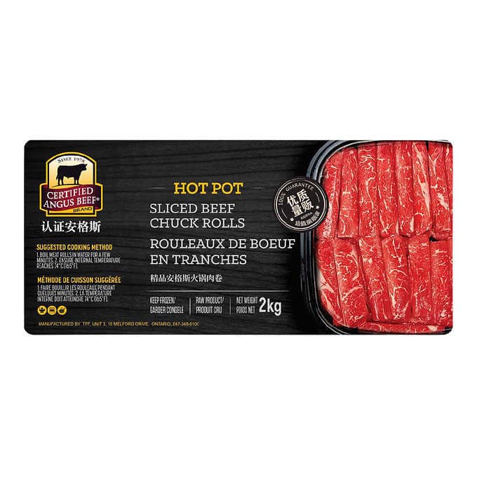 Treat your taste buds to a truly exceptional experience with Certified Angus Beef Hot Pot Beef Chuck Rolls. An ideal choice for hot pot dishes, these sliced raw beef chuck rolls are sourced from Angus cattle and frozen with no added hormones. Each 2 kg package contains pure, high-quality beef that will add a delicious flavor to your meal. Get your hands on this NEW product today and enjoy the flavor of Angus beef in your dishes!