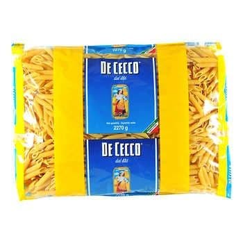De Cecco Penne Rigate is the perfect pantry staple for any home. Made with high-end durum wheat semolina and bronze drawings, this product is crafted with a slow drying process for the best flavor and texture. De Cecco Penne Rigate is GMO-free, trans fat-free, and saturated fat-free, and comes in a 2.27 kg package. Enjoy the classic Italian penne rigate in your kitchen today!