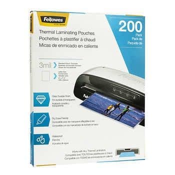 Organize and protect your documents with Fellowes Thermal Laminating Pouches. These 3 mil thick pouches come in a convenient letter size of 229 mm × 292 mm (9 in × 11.5 in) and are perfect for a range of projects. The clear finish provides a durable, waterproof protection, and is even dry erase friendly. All Fellowes Thermal Laminating Pouches are compatible with all thermal laminators, and come in a package of 200.