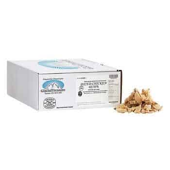 Introducing Glacial Treasure Frozen Cooked Diced Chicken! Our fully cooked chicken is conveniently pre-diced, making it easy to prepare delicious and healthy meals for your family. This halal chicken is 60% white meat and 40% dark meat and is free from soy and gluten. Each 4.54 kg (10 lb) box comes frozen, so you can keep it in your freezer for easy access whenever you need it. Get your hands on Glacial Treasure Frozen Cooked Diced Chicken today and enjoy a nutritious meal in no time!