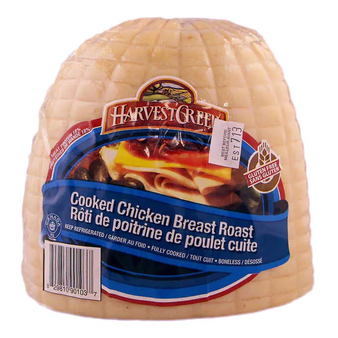 Introducing Harvest Creek Cooked Chicken Roast! This deli meat is fully cooked and contains 18% meat protein, making it a delicious and nutritious addition to any meal. This random weight product has an average weight of 1.5kg and is free from gluten. Keep it refrigerated for maximum freshness. Enjoy Harvest Creek Cooked Chicken Roast today!