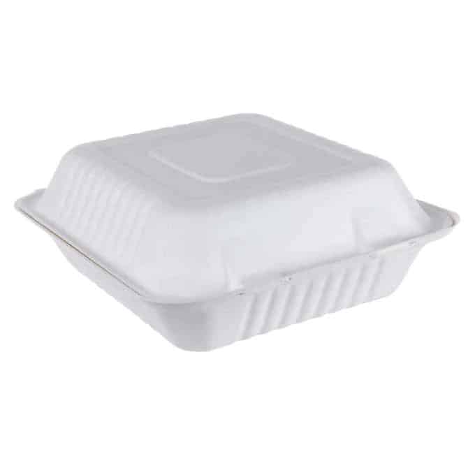 iEco Hinged Bagasse Container 8 in × 8 in is perfect for takeout and offers a great way to keep your food fresh! This container is microwavable, compostable, and comes in a pack of 50 containers. Dimensions: 20.32 cm × 20.32 cm (8 in × 8 in). Colour: white. Model: BAG88.