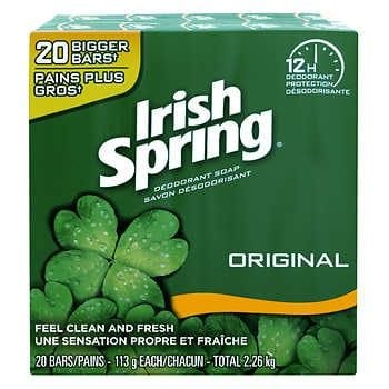 Introducing Irish Spring Deodorant Soap! Our original scent bar soap provides 12 hours of protection and is available in a pack of 20, 113 g (3.9 oz) bars. Its green color give a refreshing and clean look to any bathroom. Our deodorant soap is perfect for anyone looking for long-lasting odor protection. Get the freshness of Irish Spring today!