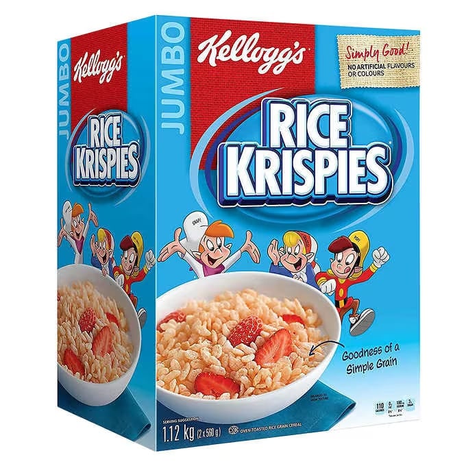 Kellogg's Rice Krispies Jumbo Format is a delicious cereal perfect for breakfast or anytime. Enjoy the classic crunch of Rice Krispies with this jumbo size format.