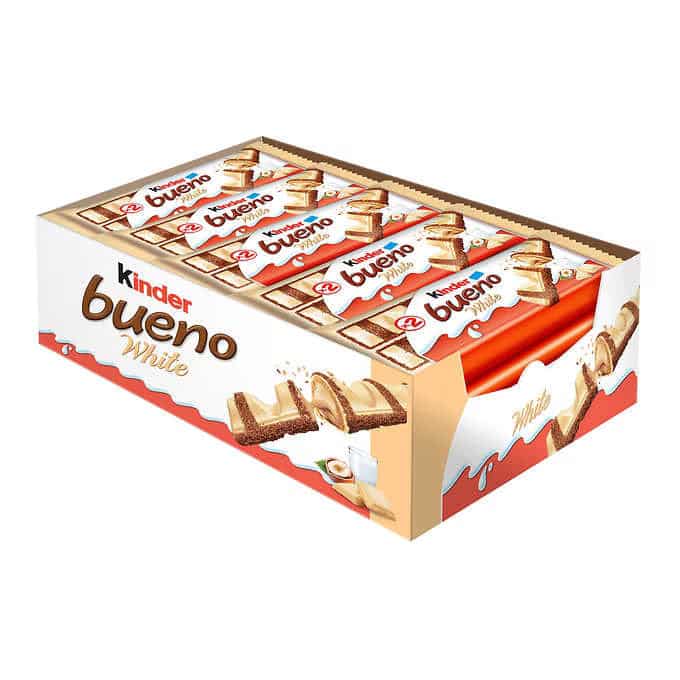 Treat yourself to the delicious creamy goodness of Kinder Bueno White! This creamy, white chocolate bar is the perfect indulgence for any sweet tooth. The smooth texture and rich flavor make it the perfect snack for any occasion. Enjoy the unique combination of creamy white chocolate and crispy wafer pieces that will leave you wanting more. Get your hands on Kinder Bueno White today!