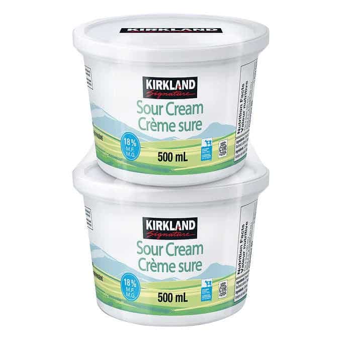 Kirkland Signature's 18% Sour Cream is a premium quality cream that is perfect for baking and making desserts. It is made from fresh cream and is a great source of calcium. With a 500 mL container size, it comes in a 2-pack package quantity. The new packaging makes it easy to store and transport. Enjoy the creamy taste of this sour cream and make your recipes more delicious.