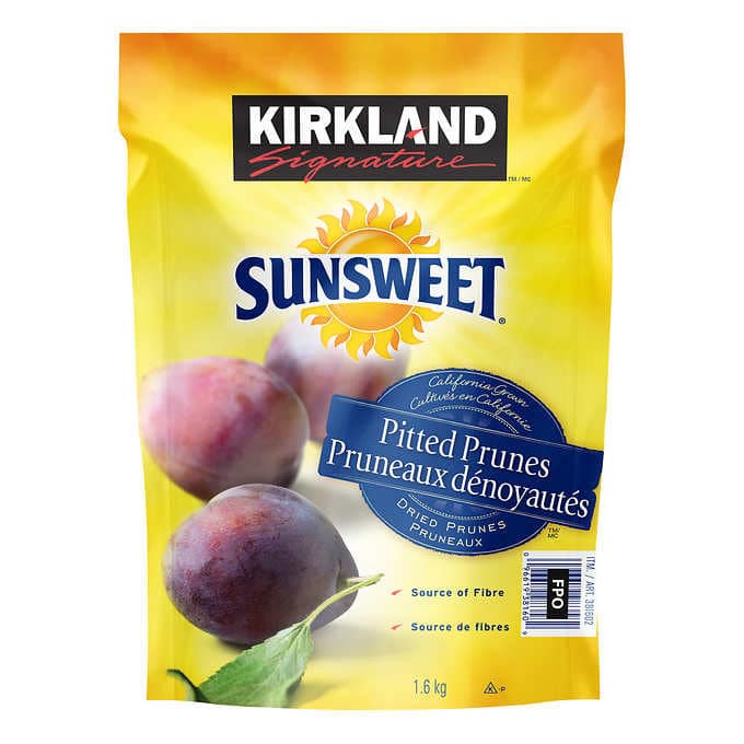 Kirkland Signature Sunsweet Dried and Pitted California Grown Prunes are a delicious and nutritious snack. This super fruit is packed with potassium, fibre and zero fat, making it a great snack for any time of the day. With 1.6 kg of dried prunes in each bag, you'll have plenty of snacks to go around. Enjoy the great taste of Sunsweet Prunes today!