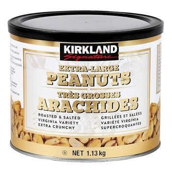 Indulge in the crunchy, roasted and salted taste of Kirkland Signature Super Extra-large Peanuts. These Virginia variety peanuts are extra crunchy, gluten-free and Kosher certified, providing you with the perfect snack for any occasion. Enjoy 1.13 kg (2.5 lb) of this delicious snack!