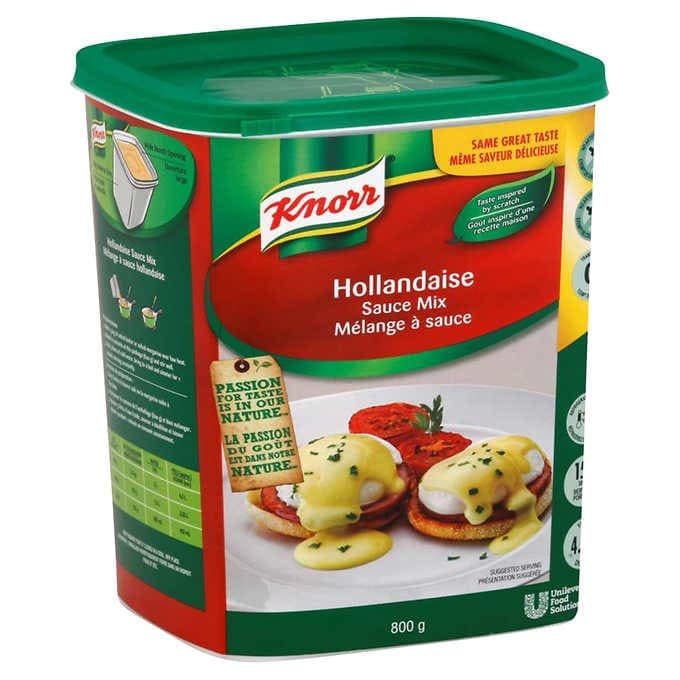 Experience the creamy, classic flavour of Knorr Hollandaise Sauce Mix. Made with real ingredients, this all-natural, trans fat-free hollandaise sauce mix will make any meal extra special. With no artificial colours or flavours, this 800 g resealable container yields 4.5 L of delicious sauce. Plus, no refrigeration is required! Enjoy the rich, buttery taste of Knorr Hollandaise Sauce Mix today.