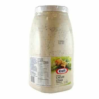 This Kraft Creamy Caesar Dressing is the perfect addition to any meal. It is shelf stable and comes in a convenient 3.78 L container. It is ready to use, so you can enjoy a Caesar flavor without the hassle. Make your meals more exciting with Kraft Creamy Caesar Dressing today!