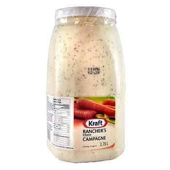Kraft Rancher's Choice Dressing is a shelf-stable, ready to use ranch dressing with a 3.78 L container size. It makes a great addition to any pantry or condiment collection.