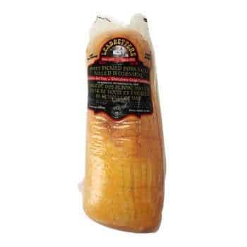 Leadbetters Peameal Bacon is the perfect addition to your kitchen! This sweet pickled pork back is uncooked and rolled in cornmeal, Canadian deli trim, and contains 15% meat protein. Keep it refrigerated and enjoy the convenience of a 2 kg average weight package. Enjoy a delicious meal with Leadbetters Peameal Bacon!