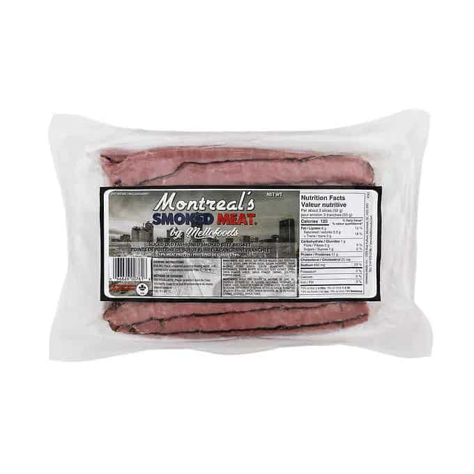 Introducing the Mello Foods Smoked Sliced Brisket, the perfect addition to any meal. This premium Canadian beef is made with traditional spices and a caramel coating, giving it a delicious flavor. It is high pressure pasteurized, with 19% meat protein, so you can enjoy it with confidence. Keep it refrigerated and enjoy the convenience of the random weight packaging, with an average of 1 kg. Enjoy the delicious flavor of Mello Foods Smoked Sliced Brisket today!