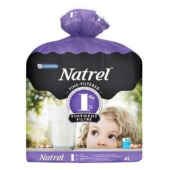 Treat yourself to Natrel 1% Milk! Our 1% milk is fine-filtered and made from 100% Canadian milk. It is a great source of calcium and vitamin D, and is pasteurized to ensure quality and safety. With a 1.33 L bag and a package of 3, you can stock up for your whole family. Keep refrigerated for best results!