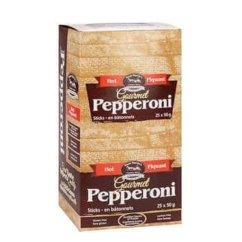 Experience the intense flavor of Noah Martin's Gourmet Hot Pepperoni Sticks. With an excellent source of protein, these gluten-free and lactose-free snacks are perfect for any occasion. Enjoy the unique hot flavor in every bite and rest-assured that no refrigeration is required with each 25 × 50 g (1.76 oz) package. Discover the intense flavor of Noah Martin's Gourmet Hot Pepperoni Sticks today.