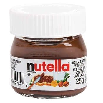 Nutella Mini Jars are Hazelnut spread made with hazelnuts, skim milk and cocoa. It contains no artificial colours or preservatives, is peanut-free and gluten-free. It comes with 64 × 25 g of nutella in the package.