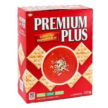 Treat yourself to a delicious and nutritious snack with Premium Plus Salted Tops Crackers! These tasty crackers are salted to perfection and are trans fat-free, low in saturated fats, and cholesterol-free. Enjoy a 1.35 kg container of these scrumptious crackers and satisfy your cravings.
