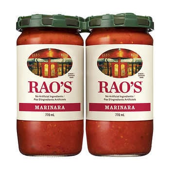 Rao's Marinara Sauce is the perfect way to add some Italian flavor to your meals. This slow simmered sauce is made in Italy from Italian tomatoes and contains no artificial preservatives or added sugar. With two jars of 770 mL, you'll be able to enjoy this delicious sauce for many meals to come.