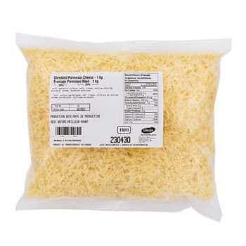 Salerno Shredded Parmesan Cheese is the perfect addition to any dish! This hard body cheese is made with 30% M.F. and 30% moisture, making it a great option for those who are looking for a cheesy, rich flavor. This cheese comes in a convenient 1 kg bag, so you'll never run out of your favorite topping! Keep Salerno Shredded Parmesan Cheese refrigerated for best quality.