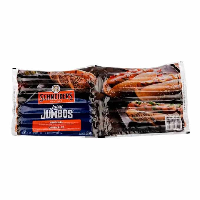 Schneiders Juicy Jumbo Hot Dogs are sure to make your next meal or snack a delicious one. With their succulent taste and jumbo size, these hot dogs are sure to please. Perfect for barbecuing, grilling, or even just a snack on the go, you won't be disappointed with Schneiders Juicy Jumbo Hot Dogs.