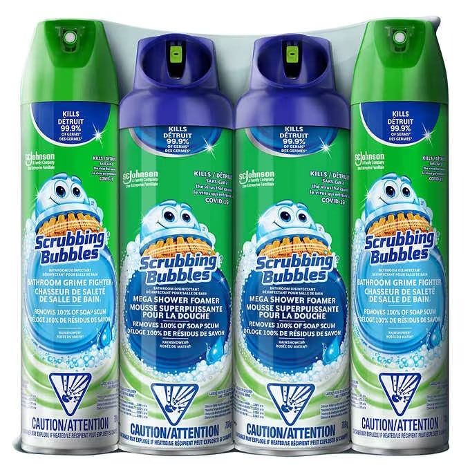 Scrubbing Bubbles Mega Shower Foamer and Bathroom Cleaner Aerosol Combo is the perfect product for keeping your bathroom clean. Its fast foaming action quickly and easily removes dirt, grime, and soap scum from surfaces. It's also great for cleaning showers, sinks, tubs, and countertops. It leaves behind a sparkling finish and a pleasant scent. Get your bathroom sparkling clean today with Scrubbing Bubbles Mega Shower Foamer and Bathroom Cleaner Aerosol Combo!