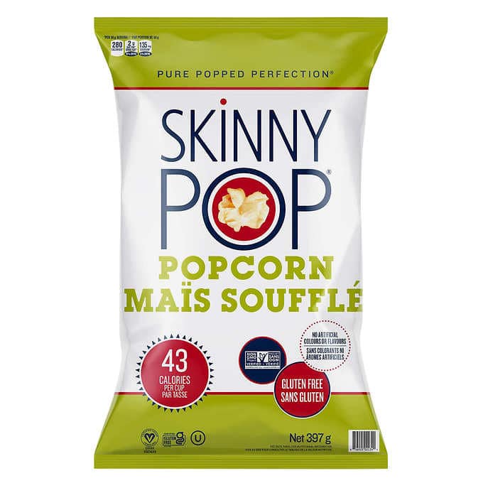 Treat yourself to an amazing snacking experience with SkinnyPop Popcorn! Enjoy a delicious bowl of popcorn without the guilt, with only 43 calories per cup. SkinnyPop Popcorn is a NEW snack option without any artificial ingredients, making it a perfect choice for those in search of a healthier alternative. This 397g container is the ideal size to share or keep for yourself. Try some today and experience the goodness of SkinnyPop Popcorn!