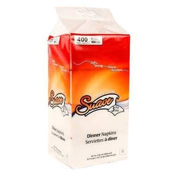 Introducing the Suave 3-ply 1/4 Fold Dinner Napkins! These dinner napkins are made from high-quality virgin paper and are a perfect way to complete any dinner table setting. Each napkin is 39.88 cm in length and width, and is 3 ply for added strength. The white colour will fit with any dinner table decor. This package contains 4 packs of 100 napkins for a total of 400 napkins. Upgrade your dinner table today with the Suave 3-ply 1/4 Fold Dinner Napkins!