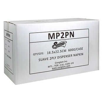 The Suave Interfold Dispenser Napkins are the perfect addition to any dining area. Made from high quality 2-ply white paper, each napkin measures 16.5 cm × 22.5 cm (6.4 in × 8.8 in). With 20 packs of 300, you receive 6,000 napkins in total. This Model: MP2PN is perfect for any business, restaurant, or home. Suave Interfold Dispenser Napkins are the perfect choice for all your napkin needs.