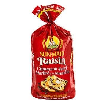 Sun-Maid Raisin Cinnamon Swirl Bread is a delicious and healthy bakery product. Enjoy the great taste of raisin bread with a delicious cinnamon swirl. Available in 3 convenient 450g packages, Sun-Maid's Raisin Cinnamon Swirl Bread is the perfect bread for any occasion!