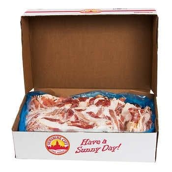 Discover the delicious taste of Sunshine City Naturally Smoked Frozen Econo Bacon! Our economy pack of 5 kg (11 lb) keeps your bacon fresh and frozen, so you can have it whenever you need it. All of our bacon is naturally smoked, making it the perfect addition to any meal. Experience the enjoyable flavor of Sunshine City Naturally Smoked Frozen Econo Bacon today!