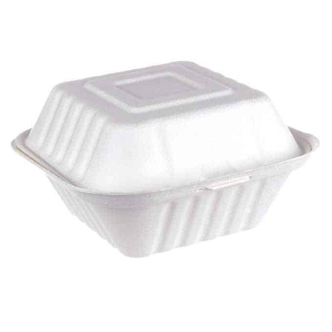 Terra Verde Hinged Bagasse Container is a 100% compostable, microwavable container perfect for takeout and food delivery. This container is 15.25 cm x 15.25 cm (6 in x 6 in) square in shape and comes in a package of 250. This container is ideal for any food service establishment that needs an economical and reliable solution for their takeout needs.