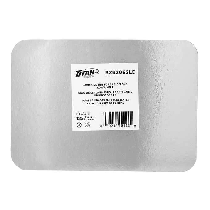 Titan Lids for 3-lb Rectangular Aluminum Containers are the perfect way to ensure your take-out orders are secure and ready for transport. With 500 lids per pack, these foil lids are designed to fit Costco item 1386222: 3-lb Rectangular Aluminum Containers. Made of quality aluminum and offered in a silver colour, these lids are sure to meet all of your needs. Whether you're packing up leftovers or transporting a meal, Titan Lids for 3-lb Rectangular Aluminum Containers have you covered.