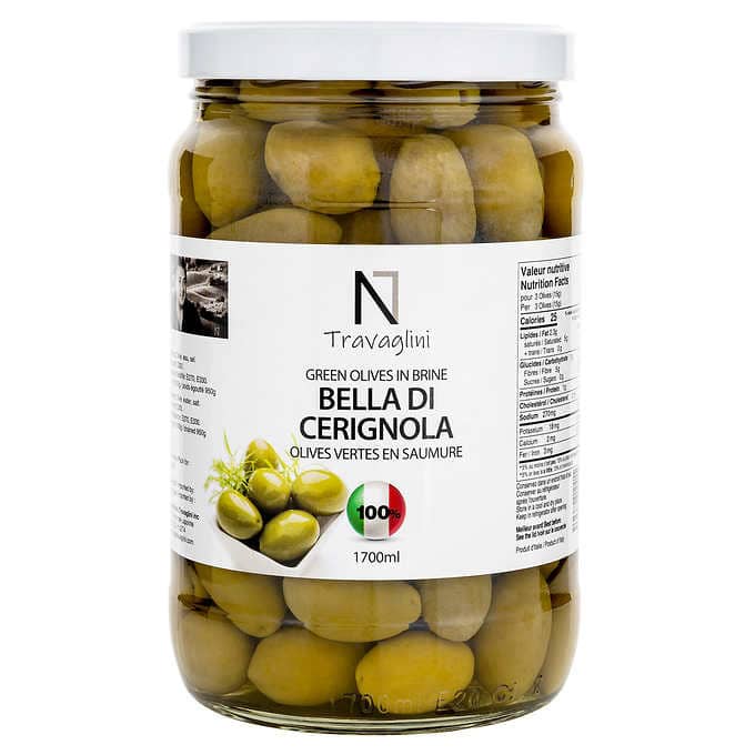 Travaglini's Green Cerignola Olives in Brine is a delicious Italian delicacy that will add a unique flavour to your meals. These NEW olives are sourced from Italy and come in a 1.7L container so you can be sure you'll have plenty of this flavourful condiment to enjoy. Their green colour and whole form make them a great addition to salads and pasta dishes. Add some zest to your cooking with Travaglini's Green Cerignola Olives in Brine!