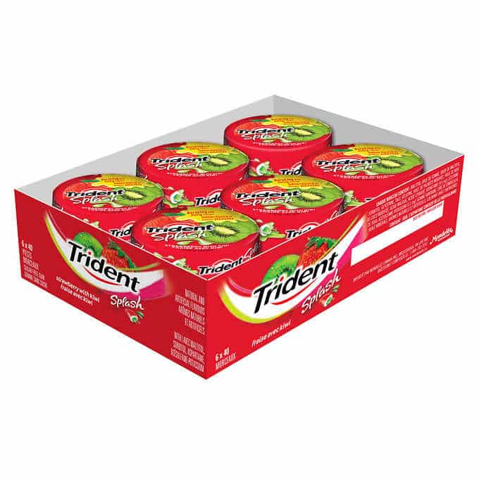 Indulge in Trident Splash's Strawberry-Kiwi Gum Bottles! These sugar free bottles of gum contain 40 pieces each, and come in a pack of 6 bottles. Enjoy the refreshing taste of strawberry and kiwi with a piece of Trident Splash Gum.