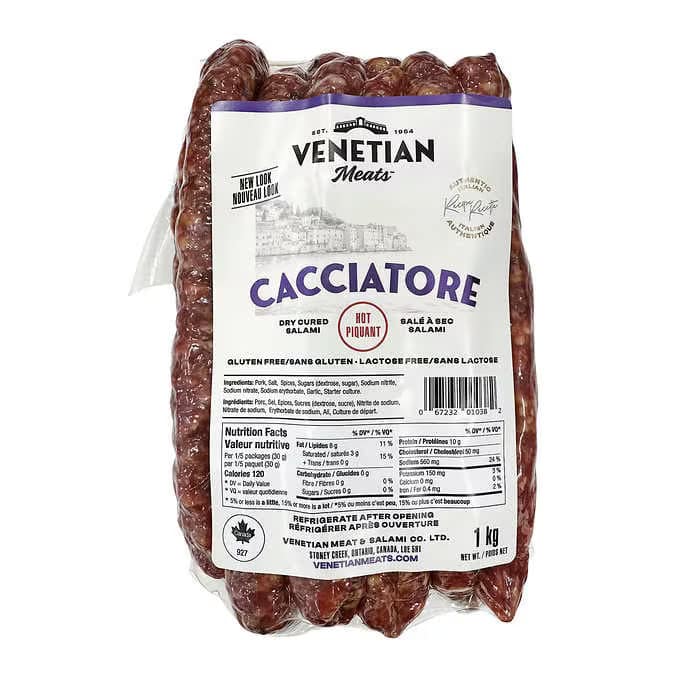Discover the bold and rich flavor of our Venetian Hot Cacciatore deli meats. Made with high quality ingredients and a traditional recipe, this deli meat is perfect for sandwiches, charcuterie boards, and more. Enjoy the zesty kick of the spicy peppers and the savory taste of our premium pork, handcrafted for a true taste of Italy.
