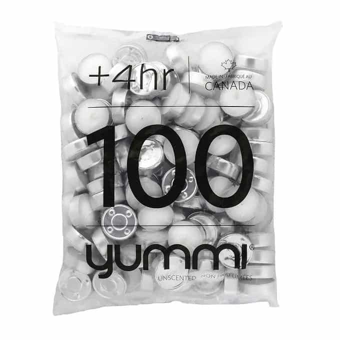 Yummi Unscented Tea Light is a must-have lighting fixture for your home. It has a burn time of 4 hours, is made from 100% fully refined paraffin and includes cotton wicks and an aluminum cup with a safety edge. Its unscented nature makes it perfect for any room.