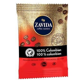 Experience the smooth and mellow taste of Zavida 100% Columbian Ground Coffee! Our light to medium roast is made with 100% Arabica Colombian coffee and is certified Kosher and Carbon Neutral. Each pouch makes 1 pot of coffee (10 to 12 cups), and comes in a convenient 2 oz (56.7 g) pouch format. Enjoy the smooth and balanced flavor of Zavida 100% Columbian Ground Coffee!