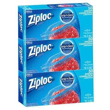 Ziploc Easy-open Large Freezer Bags are the perfect solution for keeping food fresh. Each pack contains 50 large bags and with 3 packs, you'll get a total of 150 bags. The bags are clear with easy-open tabs, so you can easily get to your food. The dimensions (L × W) are 26.8 cm × 27.3 cm (10.5 in × 10.7 in) so you can fit a variety of items. Get Ziploc Easy-open Large Freezer Bags today to keep food fresh and delicious!